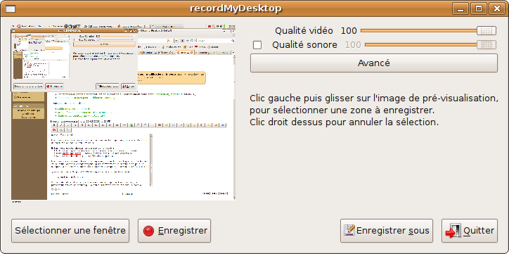 Vous pouvez également lancer l'interface graphique de recordMyDesktop via le terminal